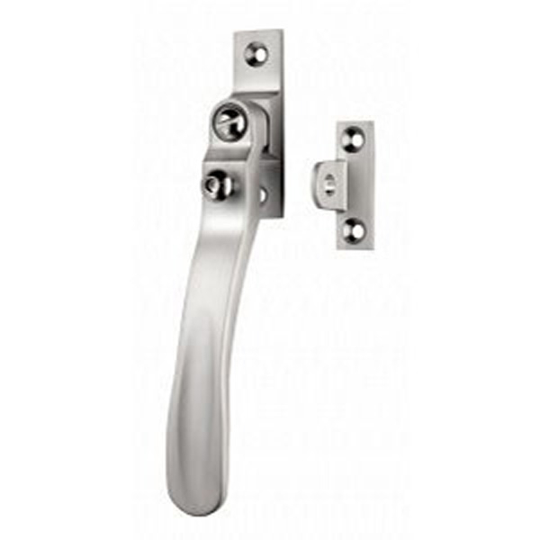 Solid brass wedge pattern casement window fastener. Suitable for weather stripped windows.