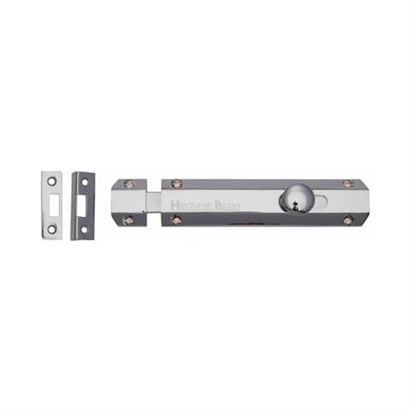 Flat Bolt 6" - Polished Chrome suitable for horizontal fixing only