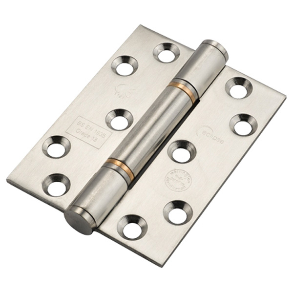 High quality grade 316 Stainless Steel thrust bearing hinge recommended for use with external applications including those in coastal area as well as use with acidic timbers. Hinge incorporates thrust bearings as well as phosphor bronze washers rather than ball bearings making it self-lubricating and maintenance free. Unlike many other hinges on the market this product will not “Tea Stain†due to the high quality of the materials used. Hinge complies with BS EN 1935:2002 Grade 13 and is suitable for doors up to 160kg (with 3 hinges) as well as being tested to 200,000 cycles. Hinge also tested to BS EN 1634-1:2000 and is fire tested to FD60 on timber Timber and FD240 on Steel application. Also complies with Certifire CF336 and is CE marked. Sold in pairs with screws.| Finish | Satin SS Grade 316 |